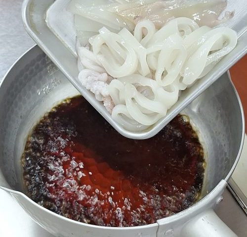 鍋に調味料を合わせて火にかけ、一煮立ちしたらいかを手早く煮ます。