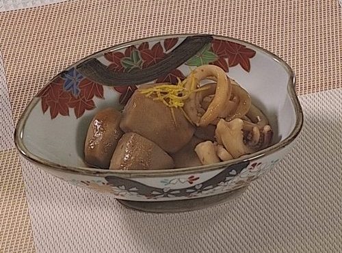里芋に味がしみたらみそを加え、いかを戻し入れてさっと煮たら完成です。