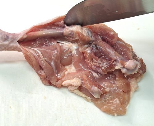 骨付きの鶏もも肉はそのままでは少し火が通りにくいので皮目に穴を開け、骨にそって切り込みを入れて開いておくと良いでしょう。