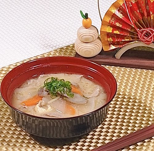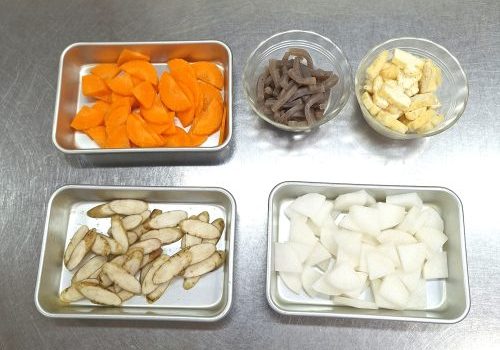 寒い時期にはこの酒粕を使った汁物は体を中から温めてくれますので、今月は“酒粕風味の豚汁”をご紹介します。