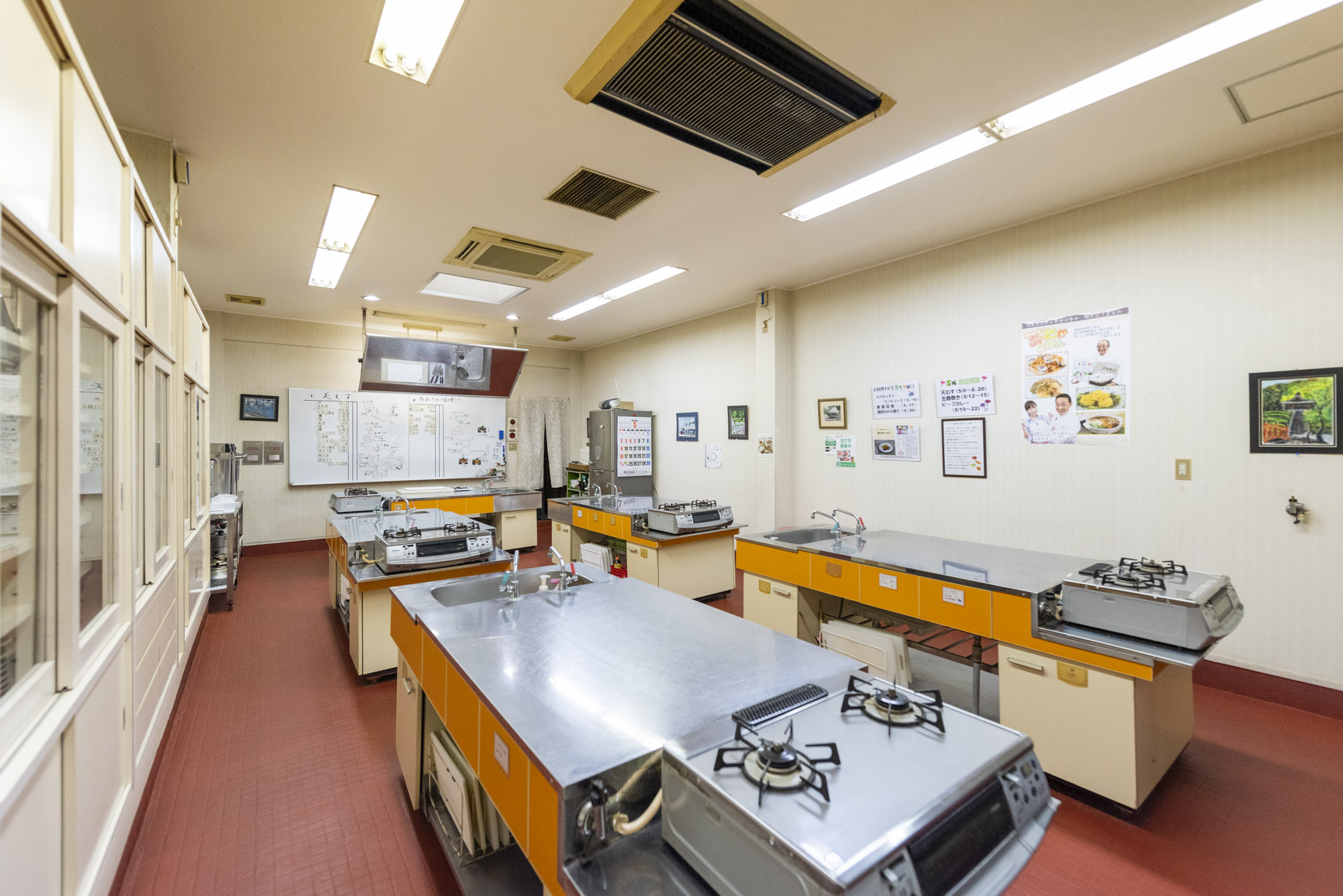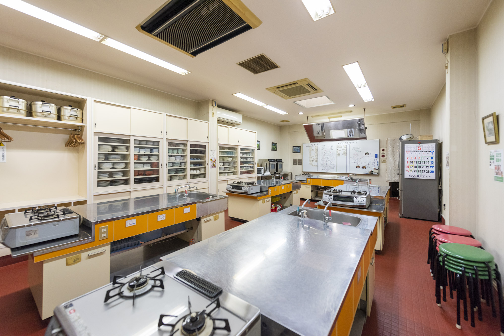 教室の中はこんな感じです。 1テーブル、4人で実習していただきます。 (新型コロナウィルス感染拡大阻止の観点から少人数を心がけております。) 季節の料理クラスとお料理1年生クラスがございます。