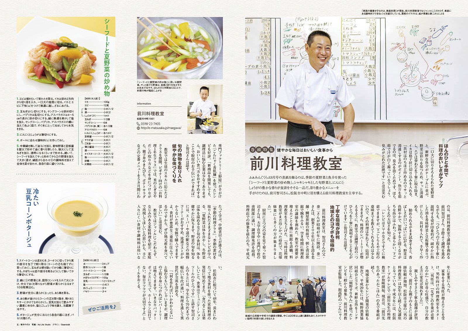 昭和47年(1972年)から松阪で料理教室をやっています。50年以上もしておりますので生徒様の中には、親子三代で受講していただいた方もいらっしゃいます。松阪ケーブルTVの“前川先生のあったかごはん!”に毎月出演しています。